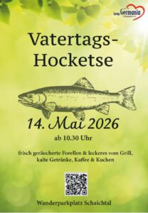 Am 14. Mai 2026 lädt die Spvgg. Germania Schaitdorf e.V. herzlich zur traditionellen Vatertags-Hocketse am Wanderparkplatz Schaichtal ein.